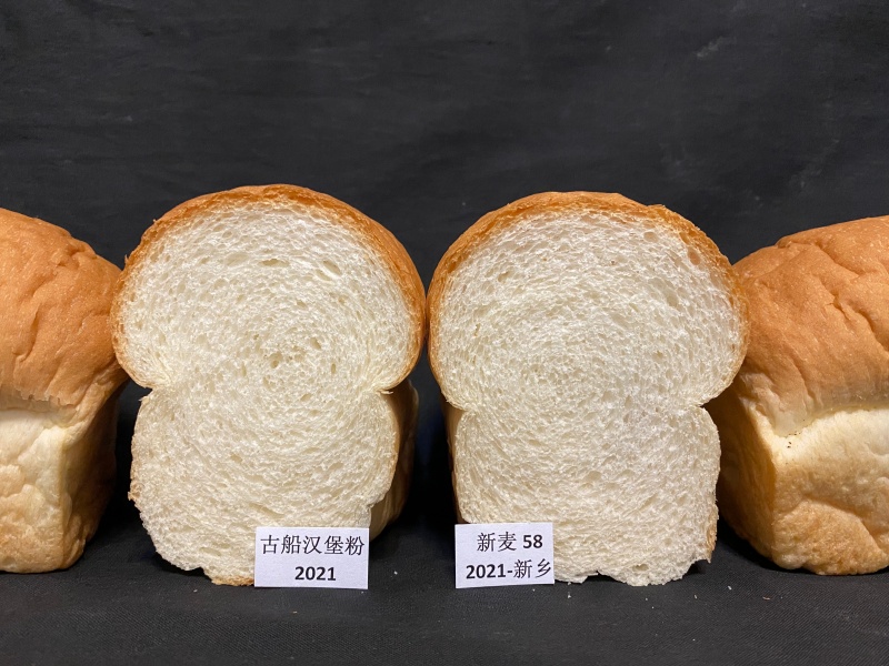 特征特性:半冬性、全生育期223.7天,比对照品种周麦18熟期早1.3天。幼苗半匍匐,叶片宽短,叶色黄绿,分蘖力较强。株高79.8厘米,株型较紧凑,轻抗倒伏,整齐度较好,穗层较整齐,熟相较好。穗纺锤型,长芒,白粒,籽粒硬质,饱满度较好。亩穗数42.3万穗,穗粒数32.6粒,千粒重43.2克。抗病性鉴定:高感赤霉病,高感白粉病,高感叶锈病,中感纹枯病,慢条锈病。品质检测:籽粒容重819克/升、794克/升,蛋白质含量15.36%、17.06%,湿面筋含量34.0%、36.1%,稳定时间36.1分钟、23.7分钟,吸水率61.0%、61.0%,最大拉伸阻力691Rm.E.U.、688Rm.E.U.,拉伸面积146平方厘米、165平方厘米。2019-2020年度参加黄淮冬麦区南片水地组区域试验,品质指标达到强筋小麦标准;2020-2021年度参加黄淮冬麦区南片水地组区域试验,品质指标达到强筋小麦标准。